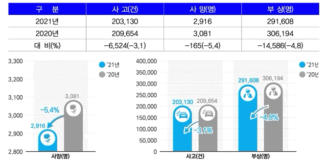 2021년 기준으로 교통사고 건수는 203,130건,