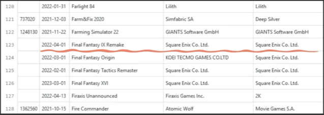 당시 유출된 게임 리스트 중에는