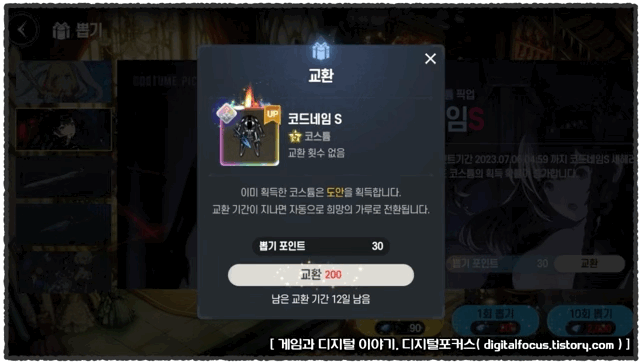 코스튬을 획득 및 강화하면 뽑기권을