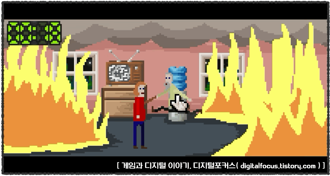 지직거리는 티비와와 정수기밖에 없는 불난 집안.