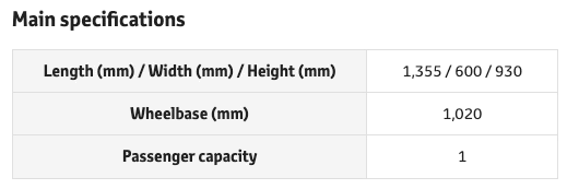전장 1,800mm, 전폭 700mm,