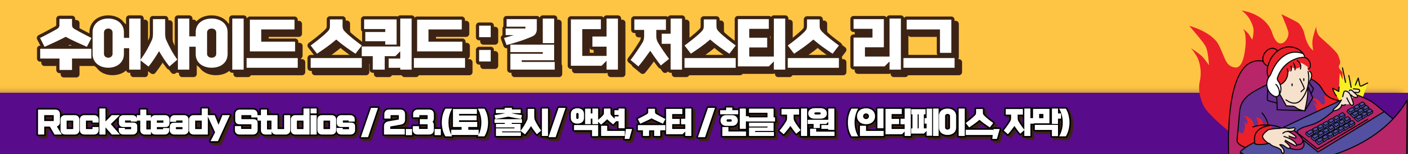 슈퍼 히어로를 상대로 위험한 임무를 수행하는 3인칭 액션 슈터게임, 수어사이드 스쿼드 : 킬 더 저스티스 리그입니다. 플레이어는 수어사이드 스쿼드의 멤버인 할리퀸, 데드샷, 캡틴 부메랑, 킹샤크를 활용하여 저스티스 리그를 제거한다는, 불가능에 가까운 임무를 맡게 되는데요. 메트로폴리스를 탐험하면서 다양한 퀘스트를 수행하고, 새로운 아이템이나 기술을 습득하여 캐릭터를 육성할 수 있어요. 공개된 트레일러 영상에서도, 굉장히 화려하고 속도감 넘치는 연출을 볼 수 있어 기대가 많이 되는 작품인데요. DC 코믹스를 좋아하시거나, 전작인 배트맨 아캄 시리즈를 재미있게 플레이하셨다면, 수어사이드 스쿼드도 놓치지 마세요!