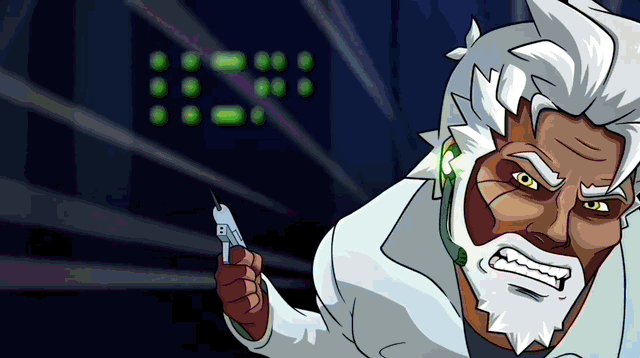 박사가 결연한 표정으로 주사한