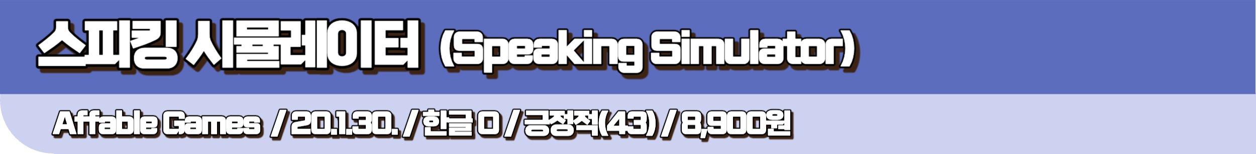 병맛 넘치는 시뮬레이터 게임, 스피킹 시뮬레이터입니다. 플레이어는 인간사회에 침투한 로봇이 되어, 입과 혀를 열심히 굴려가며 대화를 이어나가야 하는데요. 사회성 있는 인간인 척해야 하기 때문에, 어색하지 않게 미소를 짓고, 눈을 맞추거나 눈썹을 추켜올리기도 해야 합니다. 특히, 말을 하는 원리를 잘 파악하여, 횡설수설하지 않도록 주의해야 하는데요. 자칫 오류가 발생했다가는 안면이 터져버릴 수도 있기 때문입니다. 컨트롤이 꽤나 어렵기 때문에 가볍게만 즐겨보시면 좋을 것 같네요.