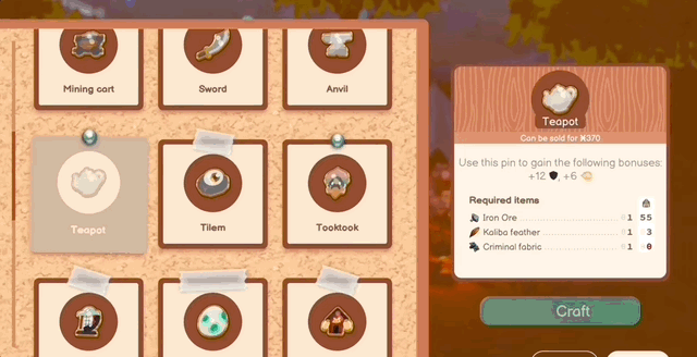 재료를 소모하여 마을 내에