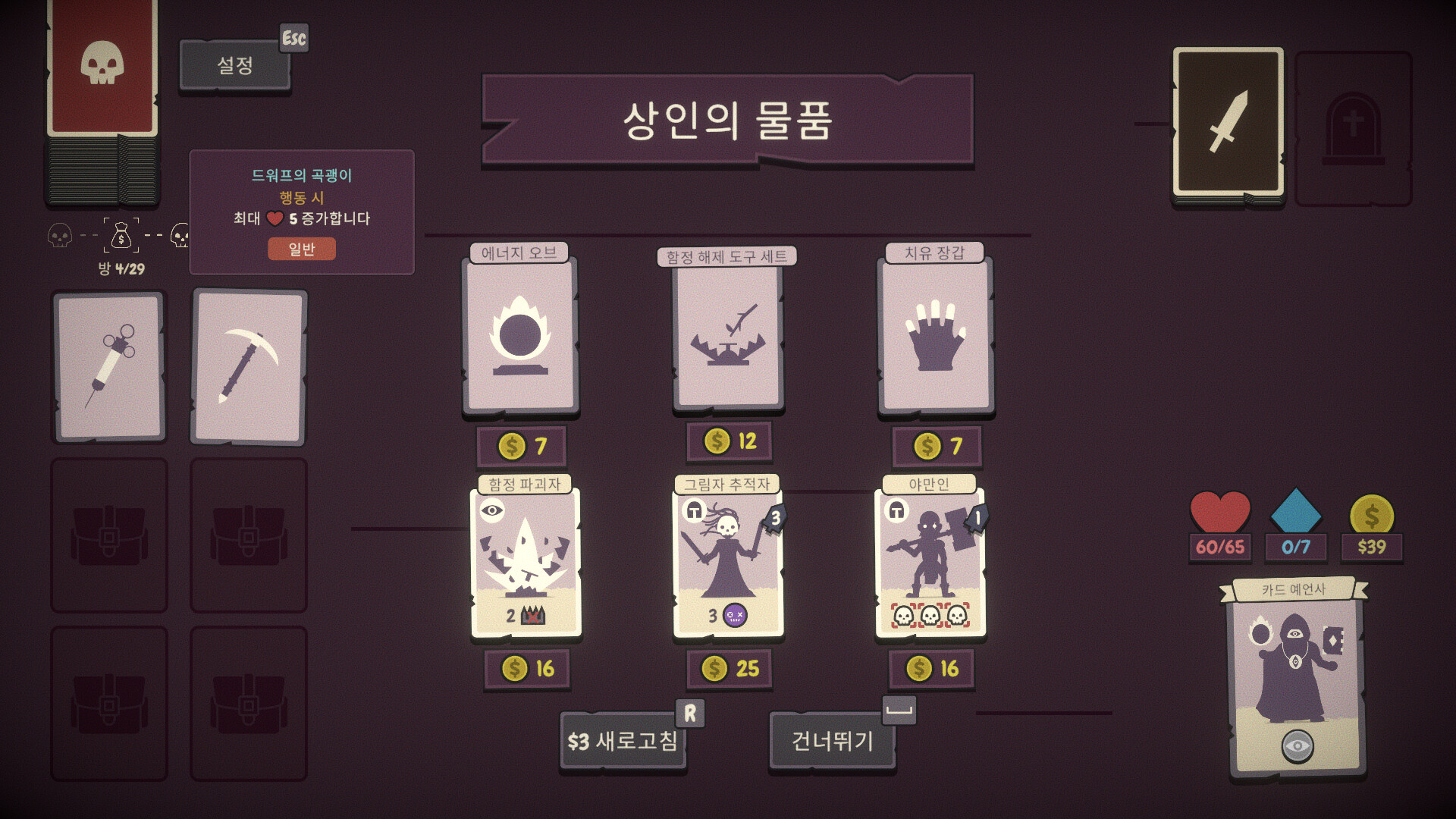 ㅇ 장르 : 로그라이크, 덱빌딩, 퍼즐