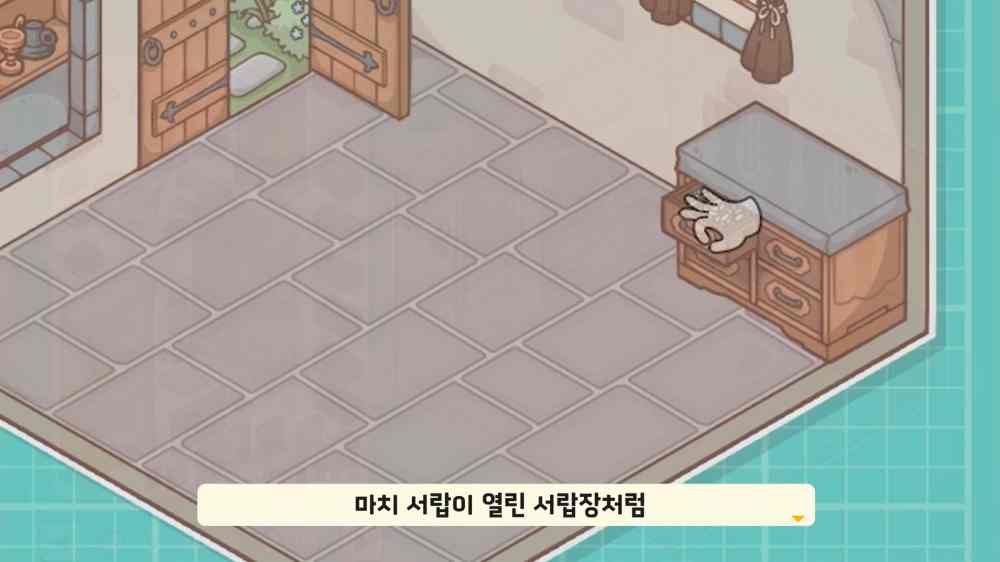 닫힌 서랍장 스티커 위에 열린 서랍 모양의